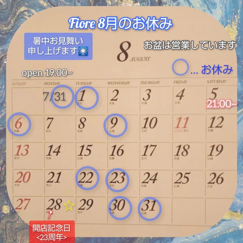 お蔭様で8月28日、Fioreは23年を迎えます。